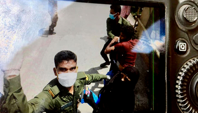 ভুক্তভোগী রুবেল বলেন, ‘একপর্যায়ে আনসাররা তার গায়ে হাত তোলেন। এ ঘটনার ছবি তুলতে যান বাংলাদেশ প্রতিদিনের আলোকচিত্রী জয়িতা রায়। এ সময় আনসার সদস্যরা তাকে থাপ্পড় দিতে এলে জয়িতা সরে পড়েন। এরপর ঘটনার ছবি তুলতে আমি এগিয়ে যাই। তখন আনসার সদস্যরা থাপ্পড় মেরে আমার ক্যামেরার ফিল্টার ভেঙে ফেলে।’