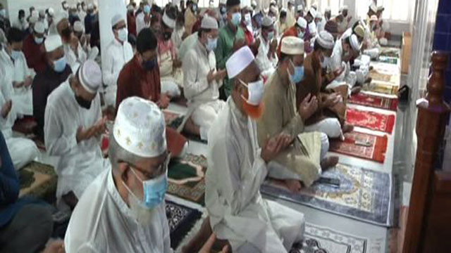 নামাজ শেষে করোনা মহামারি থেকে বাংলাদেশসহ বিশ^বাসীকে মুক্তি দানে মহান আল্লাহপাকের দরবারে বিশেষ দোয়া চেয়ে মোনাজাত করা হয়।