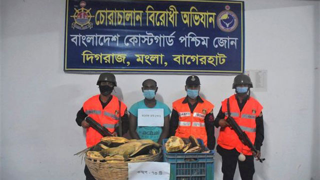 ২৬ জুলাই ২০২১ সন্ধ্যায় বাংলাদেশ কোস্ট গার্ড পশ্চিম জোনের বিসিজি বেইস মংলা কর্তৃক বাগেরহাট জেলার মোংলা থানাধীন আপাবাড়ির দিগরাজ এলাকায় একটি বিশেষ অভিযান পরিচালনা করে ৭৩ টি বিলুপ্ত প্রায় মিঠা পানির সুন্ধি প্রজাতির কচ্ছপসহ ১ জন কচ্ছপ ব্যবসায়ীকে আটক করা হয়।