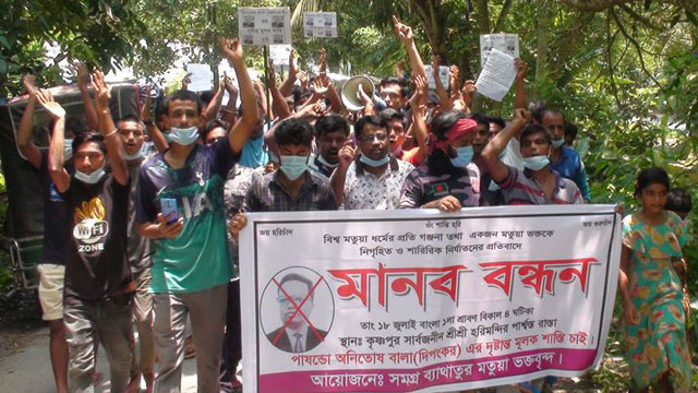 গোপালগঞ্জে মতুয়া ধর্মকে কটাক্ষ করার প্রতিবাদে ও দোষীর শান্তির দাবীতে মানববন্ধন