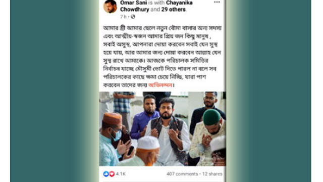 ফেসবুকে স্ট্যাটাসে তিনি লিখেন, ‘আমার স্ত্রী আমার ছেলে নতুন বৌমা বাসার অন্য সদস্য এবং আত্মীয়-স্বজন আমার প্রিয় জন কিছু মানুষ, সবাই অসুস্থ, আপনারা দোয়া করবেন সবাই যেন সুস্থ হয়ে যায়, আর আমার জন্য দোয়া করবেন আল্লাহ যেন সুস্থ রাখে আমাকে।