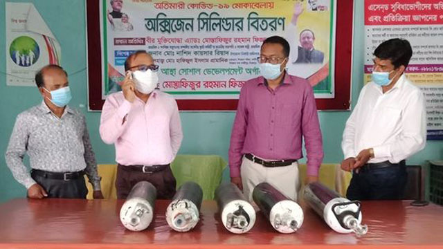 পার্বতীপুরে করোনা মোকাবেলায় হাসপাতালে অক্সিজেন সিলিন্ডার বিতরণ