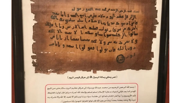 এ ছাড়া রোমের সম্রাট হিরাক্লিয়াসের কাছে মহানবী হজরত মুহাম্মাদ (সা.) ইসলামের দাওয়াত দিয়ে যে চিঠিটি পাঠিয়েছিলেন, তা এখন জর্ডানের কিং হুসাইন মসজিদে সংরক্ষিত রয়েছে। (সূত্র: আল-আরাবিয়া ডটনেট)।