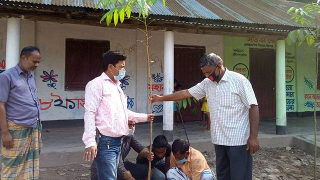 ঠাকুরগাঁওয়ের পীরগঞ্জে ভোমরাদহ উচ্চবিদ্যালয়ের মাঠ প্রাঙ্গণে স্বাস্থ্য বিধি মেনে সামাজিক দুরত্ব বজায় রেখে বৃক্ষ রোপণ কর্মসূচি পালন করা হয়।